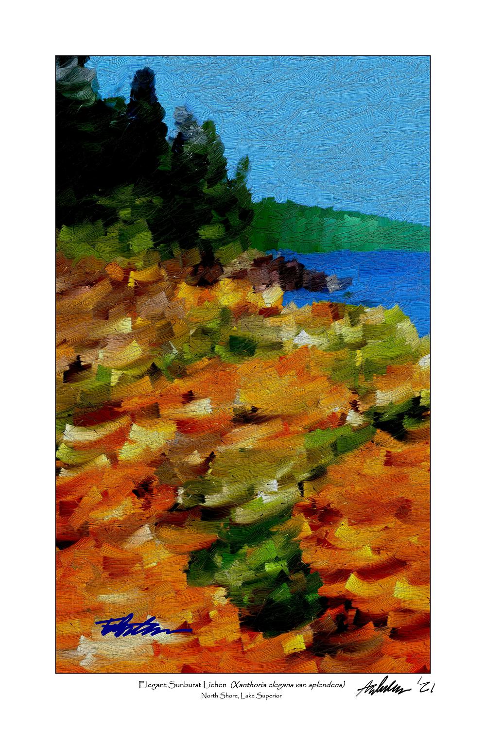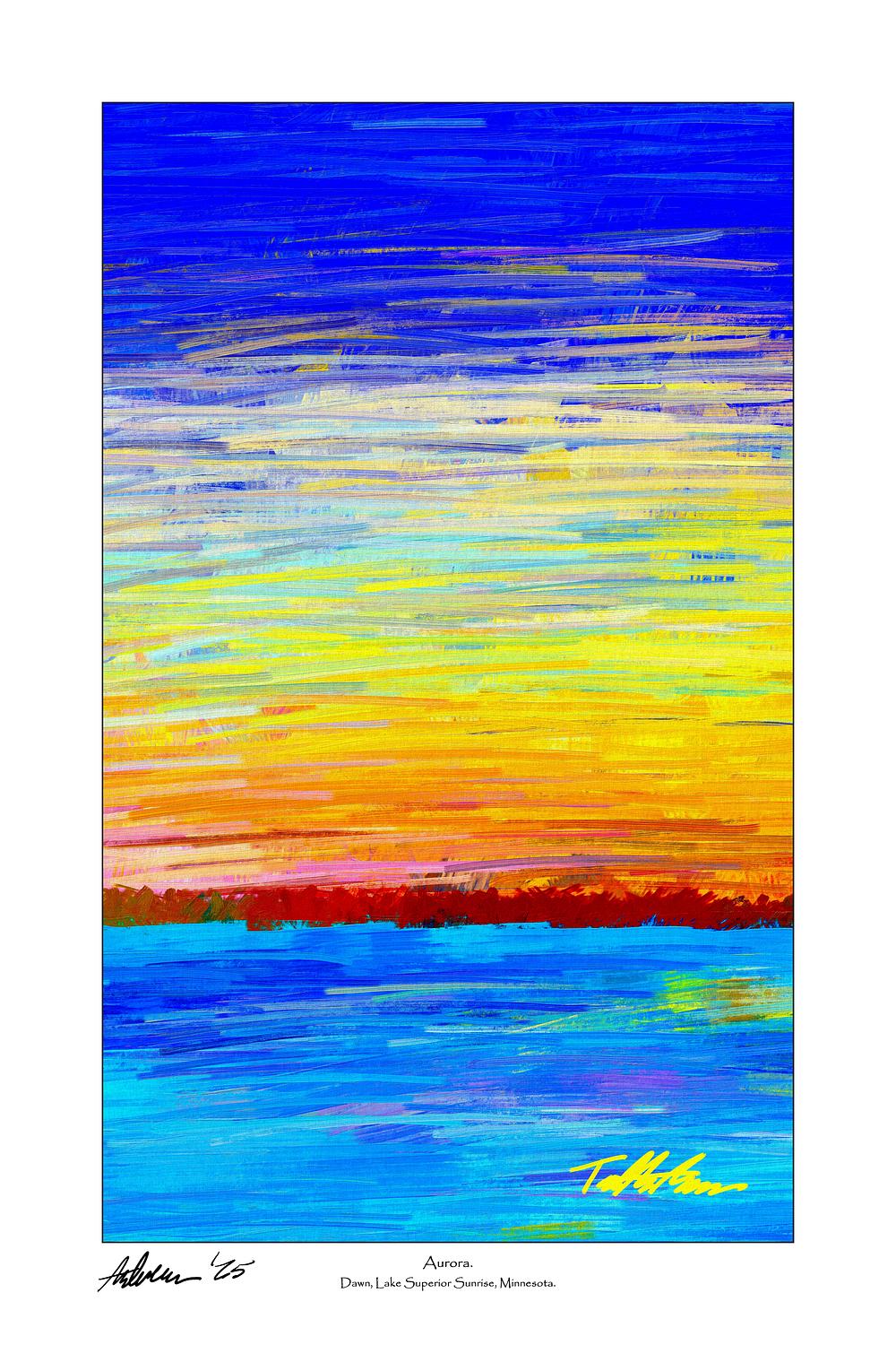 TAD ANDERSON ARTIST STATEMENT: I am a self-taught digital artist. My field observations of Midwestern topography, geology, prairie, woodland, farmland, lakescape, and driftless landform, formulate almost every piece that I create. I work in collage-layers of digital imagery, manipulating a series of elements into my compositions. Then I use my created hand-drawn digital brushstrokes in my applications, to craft each digital painting. Typically 15-25 working digital layers, each with separately painted brushstroke elements. My compositions are depictions of terrain and landforms, flora, and often, specific landscape elements. My colors are always drawn from nature... flowering elements, foliage elements, water, sky, soil, seasons of color change. I compare the color abstractions to traditional/ancient organic painting palettes -- extracting raw pigment colors from crushed fruits, berries, dried flowers, foliage oils, indigenous minerals, clay or mud. In my career as a naturalistic landscape design professional, I have created outdoor experiences that are rooted-in, inspired-by, and celebrate nature. The same statement holds true for my art. Appreciating the value and wonderment of reading the land inspired me to begin painting it. I don’t approach this “reading the land” activity as a geographer, or as a geologist, or as an ecologist, or as an agronomist -- I am not trained in those disciplines -- but rather as an artist. I usually compose on sketch paper first, on a drafting board... and sometimes on the kitchen table, then begin digitally. My self-taught trial-and-error learning over the years has included digital collage creation, canvas replication, textural brushstroke development, and color/hue extraction -- a learning period of both failures and successes.