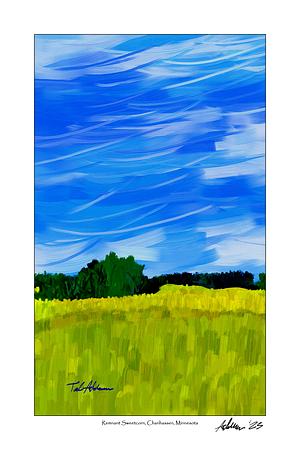 TITLE: ‘Remnant Sweetcorn, Chanhassen, Minnesota’ (USA). ~///~ DESCRIPTION: (Prints) Digital painting of late summer cornfield along the highway. Remnant. ~///~ TYPE: Digitally hand-painted image (no AI is used) ~///~ AVAILABLE PRINT FORMATS: horizontal/landscape, vertical/portrait, square (see my “collections”). ~///~ AVAILABLE MATERIALS: framed or unframed | archival professional paper | archival fine art paper | museum-quality wrapped canvas (black or white wrap edge) | metal (weatherproofed aluminum, float 1/2" off wall). | Print material options in the drop-downs above. ~///~ AVAILABLE SIZES: print sizes and pricing are cataloged in the drop-downs above.