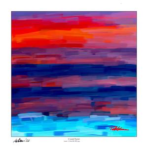 TITLE: ‘Coastal Sunset’ Subtitle: ‘Clichés We All Enjoy’ ~///~ DESCRIPTION: (Prints) Digital painting of a remarkable multicolored sunset over the Gulf Coast. ~///~ TYPE: Digitally hand-painted image (no AI is used) ~///~ AVAILABLE PRINT FORMATS: horizontal/landscape, vertical/portrait, square (see my “collections”). ~///~ AVAILABLE MATERIALS: framed or unframed | archival professional paper | archival fine art paper | museum-quality wrapped canvas (black or white wrap edge) | metal (weatherproofed aluminum, float 1/2" off wall). | Print material options in the drop-downs above. ~///~ AVAILABLE SIZES: print sizes and pricing are cataloged in the drop-downs above.