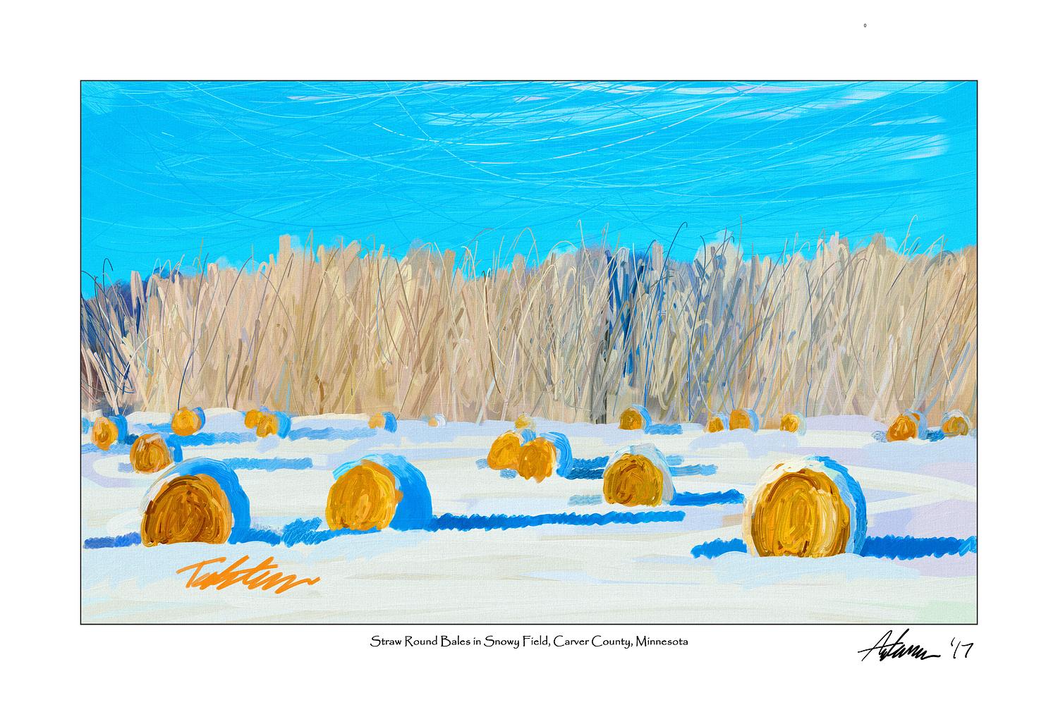 'Straw Round Bales in Snowy Field, Carver County, Minnesota' (horizontal format