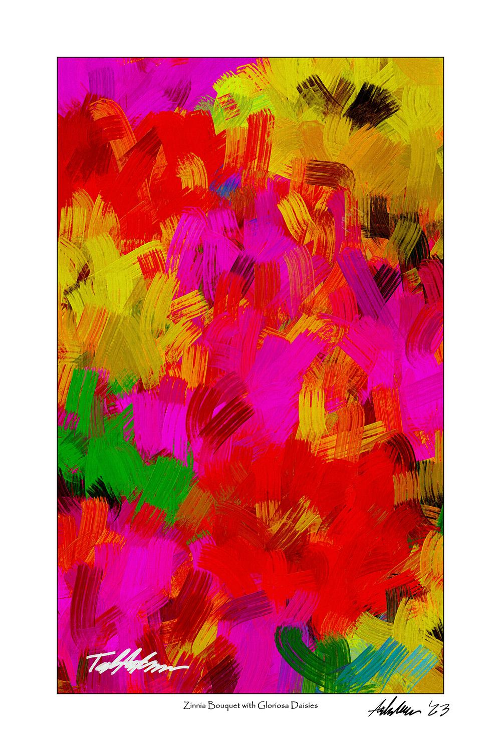'Zinnia Bouquet with Gloriosa Daisies' (vertical format)